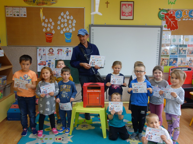 Z tej okazji nasze przedszkolaki uczestniczyły w zajęciach podczas, których został im zaprezentowany zawód listonosza oraz jego obowiązki. Dzieci dowiedziały się jak długą drogę musi przebyć list lub paczka, by w końcu trafić do odpowiedniego odbiorcy. Dzieci z ogromną radością wykonały kartki, które ozdobiły kolorowymi rysunkami i włożyły do koperty. Dzięki zajęciom i zabawie mogły same wczuć się w rolę...
