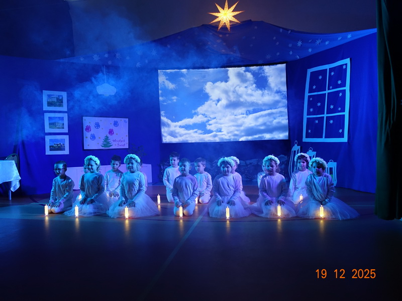 19 grudnia w ostatni dzień szkoły przed feriami świątecznymi odbyły się u nas uroczystości Bożonarodzeniowe. Już od wczesnych godzin rannych panowała gorączkowa atmosfera. Artyści przygotowywali się do występu, pozostali uczniowie znosili krzesła dla zaproszonych gości, a rodzice szykowali w klasach spotkania wigilijne. Punktualnie o godz. 9;30 rozpoczęły się występy Bożonarodzeniowe. Z udziałem władz gminnych oraz licznie zgromadzonych mieszkańców i dzieci ponad 2,5 godziny uczniowie od klasy I do VIII przedstawiały "Jasełka inne niż zwykle", czyli uwspółcześnioną wersję Opowieści...